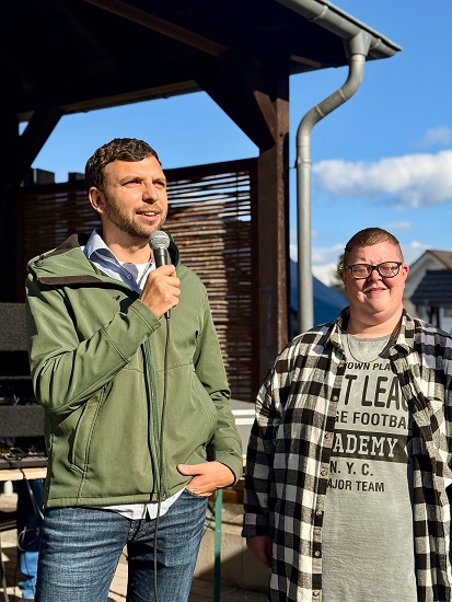 GFB-Geschäftsführer Mario Habrecht begrüßte die Gäste, unter anderem den Bürgermeister der Stadt Westerburg Janick Pape, und betonte die Bedeutung von Gemeinschaft, Unterstützung und gegenseitigem Vertrauen im Verlauf des letzten Jahrzehnts. Zudem überbrachte Habrecht die Idee der Bewohnerschaft der Wohnstätte, der Stadt eine Bank zu spendieren. Diese Holzbank wird von den Bewohnerinnen und Bewohnern kreativ gestaltet, nach Rücksprache mit der Stadtverwaltung an einem Ort in Westerburg aufgestellt und soll somit allen Bürgerinnen und Bürgern einen Platz zum Ausruhen und Verweilen bieten.