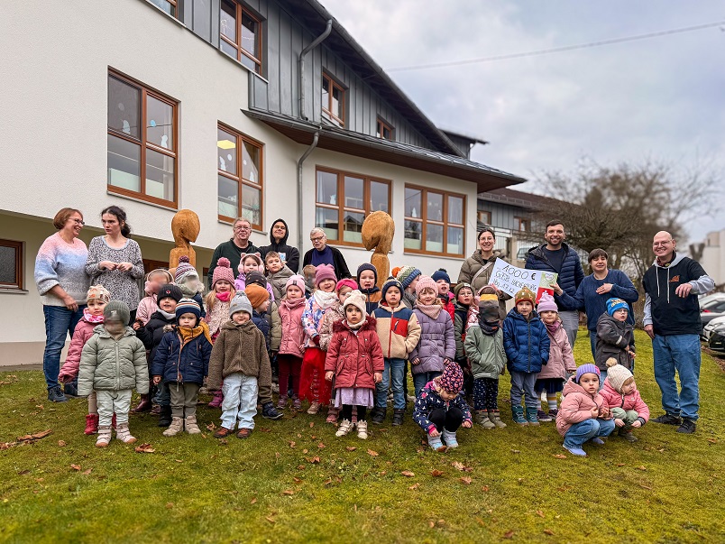 Eine weitere Spendenübergabe resultierte aus einer Aktion der katholischen Kita in Hachenburg. Im Rahmen eines Spendenlaufs warben die Kinder im Vorfeld Sponsorinnen und Sponsoren, die pro gelaufener Runde einen zuvor festgelegten Betrag spendeten. Die insgesamt erlaufene Spendensumme wurde anschließend aufgeteilt: Eine Hälfte kam dem Förderverein der Kita und damit unmittelbar den Kindern zugute, die andere Hälfte wurde für einen gemeinnützigen Zweck gespendet. In einer gemeinsamen Kinderkonferenz entschieden die Kinder selbst, Menschen mit Beeinträchtigungen zu unterstützen, und wählten hierfür unsere Wohnstätte Nisterpfad in Hachenburg.